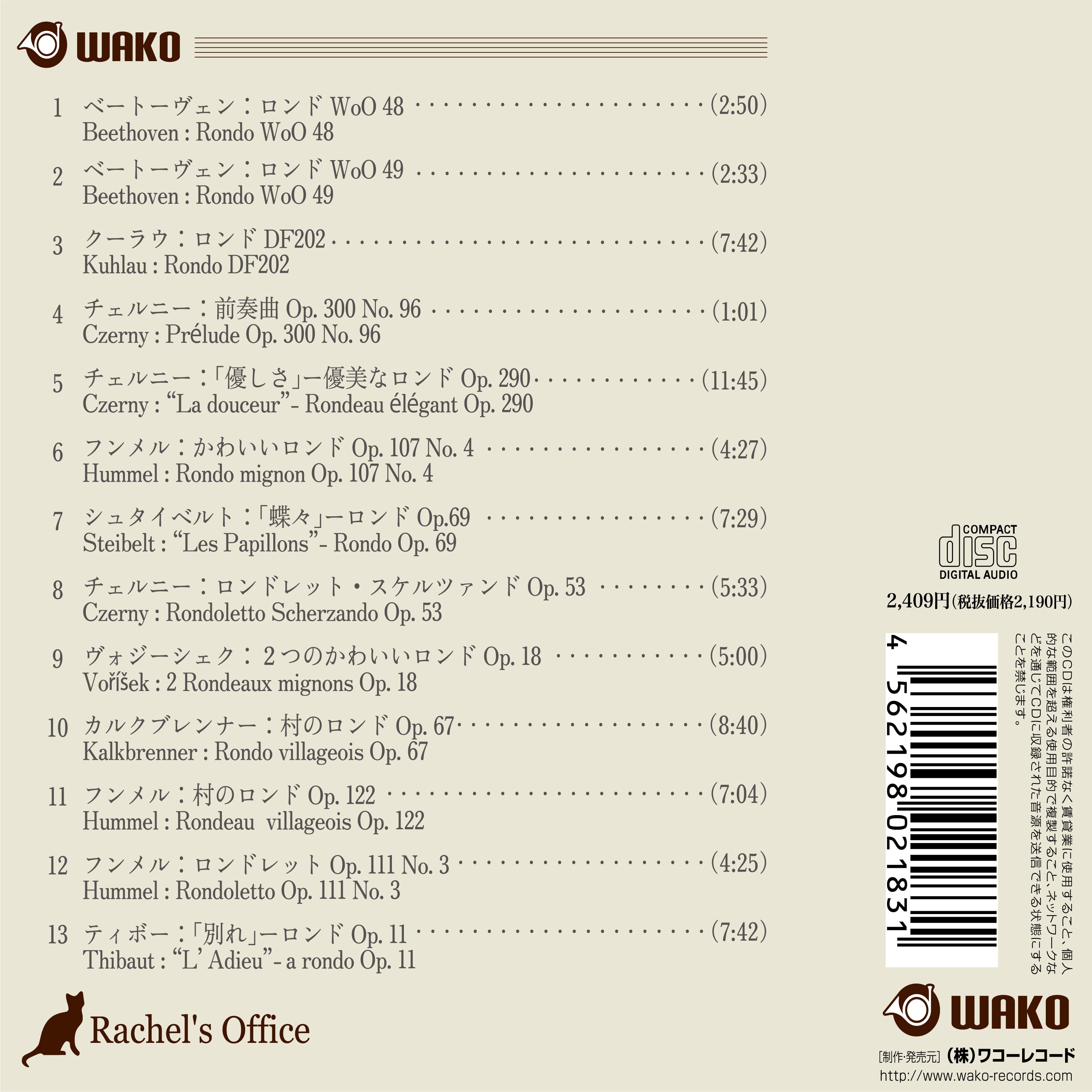 1. ベートーヴェン:ロンド WoO 48