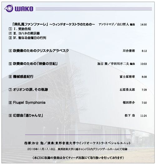 演奏:東邦音楽大学ウインドオーケストラ・スペシャルユニット